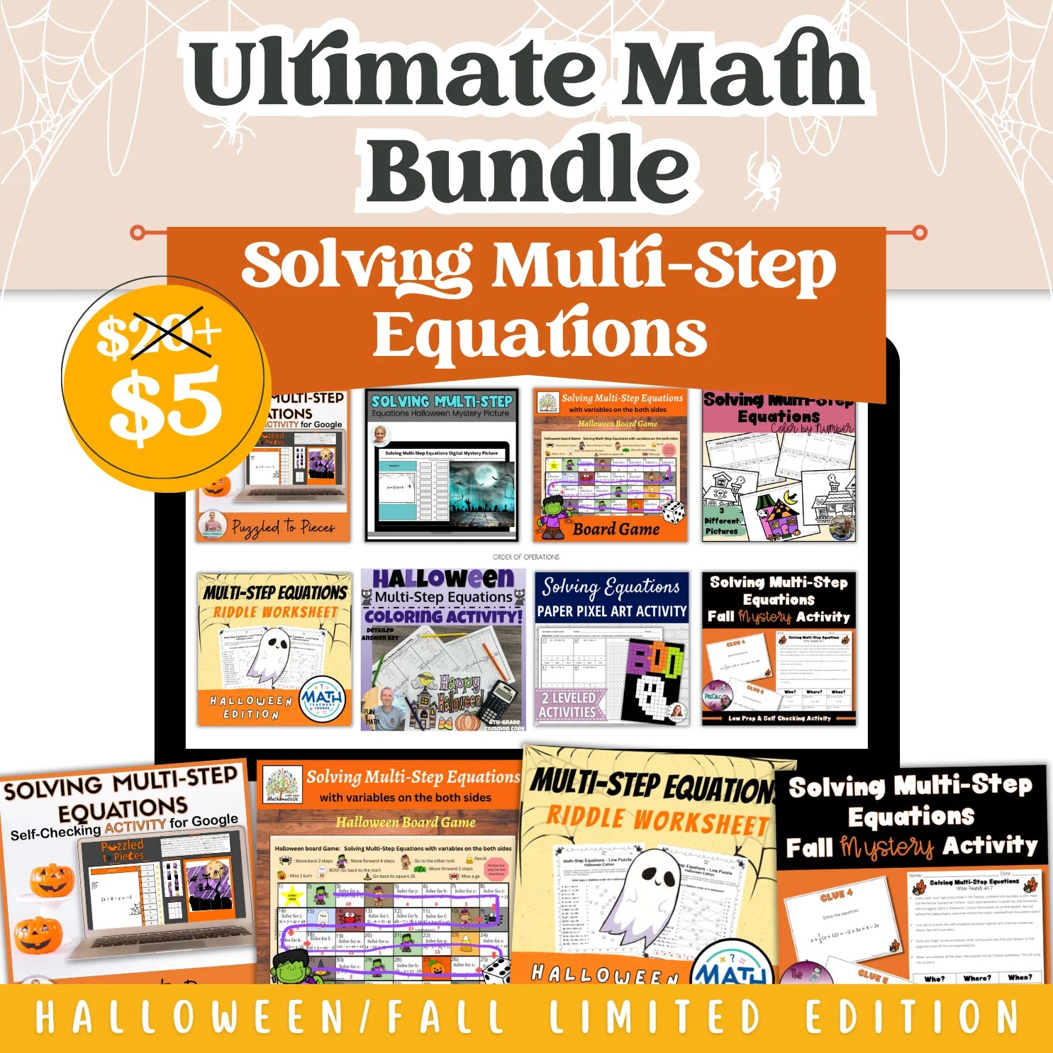 Solving Multi-Step Equations: Fall + Halloween Mini Bundle 🍁🎃